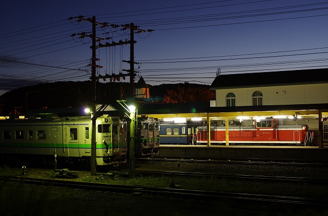 納沙布岬からの帰りも、鈍行とすれ違うタイミングで撮影した。どうやら根室本線の末端部はキハ54だけのようでがっかりしながらも、国鉄型の末裔の記録と思い2回ほど撮影し、釧路の宿へ。夜メシは、釧路港であがったサンマなどを満喫した。 |