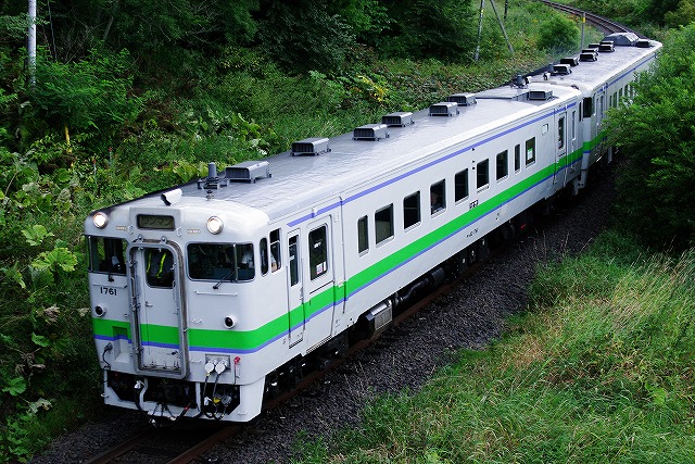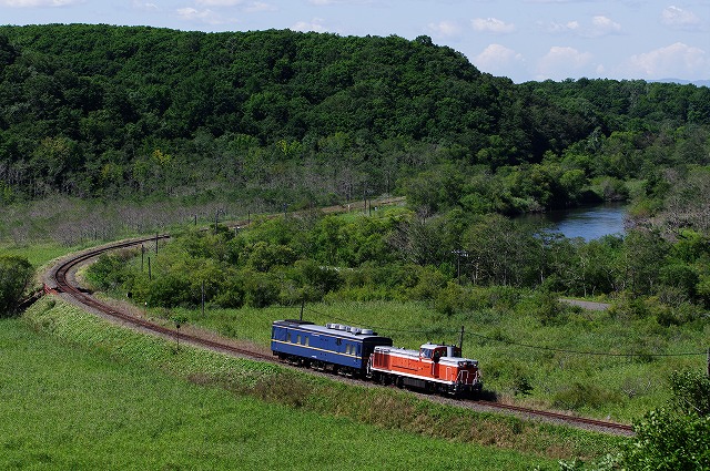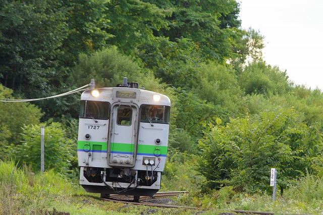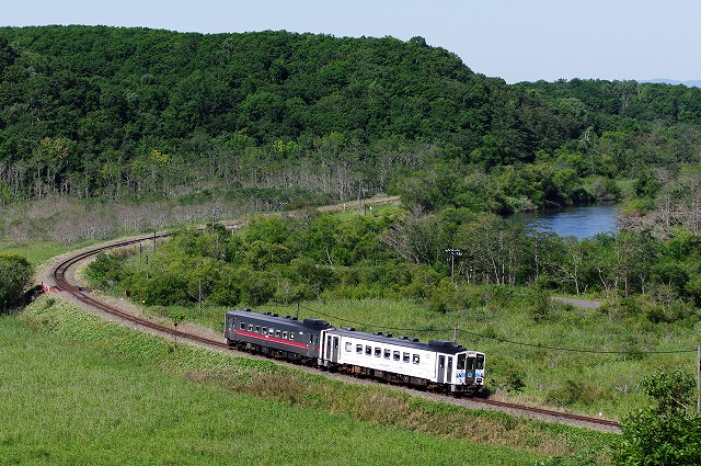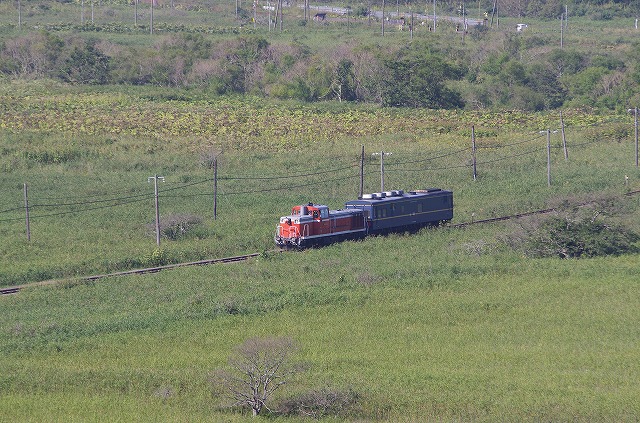 | 朝、ホテル前でMと合流し2日目スタート。昨日充分にマヤ検を撮りきっているので、撮影地はお任せで回る。まずは細岡の俯瞰ポイントへ。8時半に着いたがすでに満員御礼状態だった。ベスポジの少し下でカメラをセットして、心地よい風に吹かれながら通過を待った。スズメバチの攻撃にも遭わずに11時過ぎにマヤ検が通過、追っかけを開始するも、通行量が多く追い付かない。摩周駅の停車で先行できたので硫黄山バックへ向かう。撮影者0でラッキーと思っていたら、光線がイマイチで草も凄かった。何とか撮れるポジションでで構えたら、思いのほか良く撮れた。斜里岳サイドはたまたま先行できておまけの一発だったがキマッた。この区間のシメの浜小清水は、直前に雲が流れてきてマダラになってしまった。 |