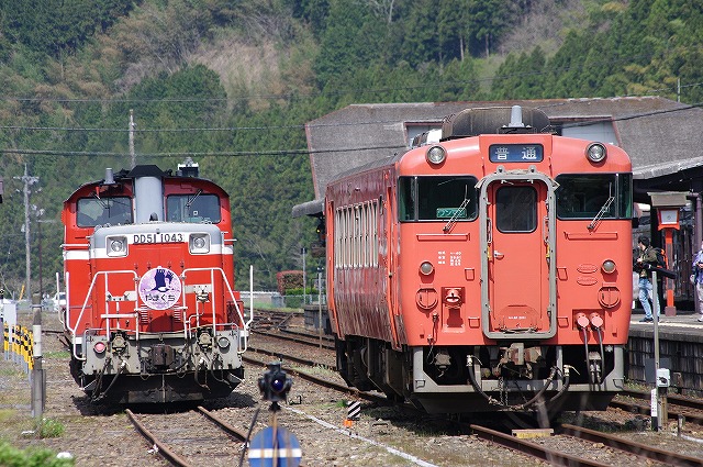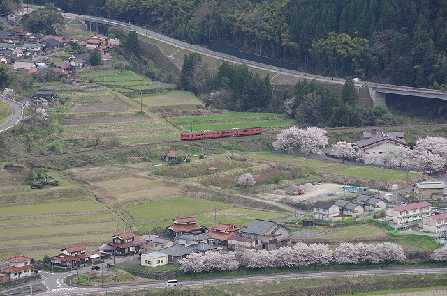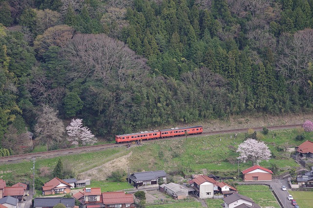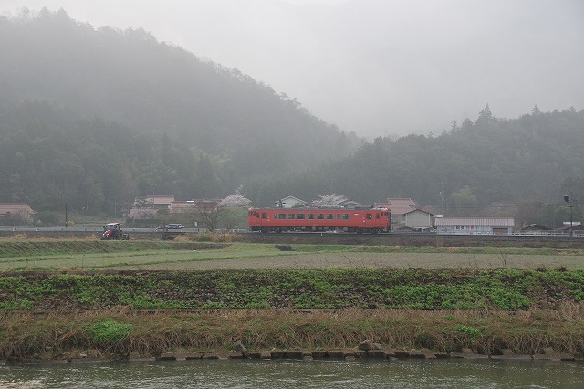 25日深夜に出発し高速を乗り継ぎ、途中仮眠して翌朝広島着。広島城・岩国城など回って、萩で宿泊。翌日は桜の萩城などを観光し、のんびり出発で山口線へ。往路は仁保の有名撮影地からスタート。なんと3名と空いていて快適に撮影。追っかけを敢行し、長門峡駅では桜と絡めた。 |
