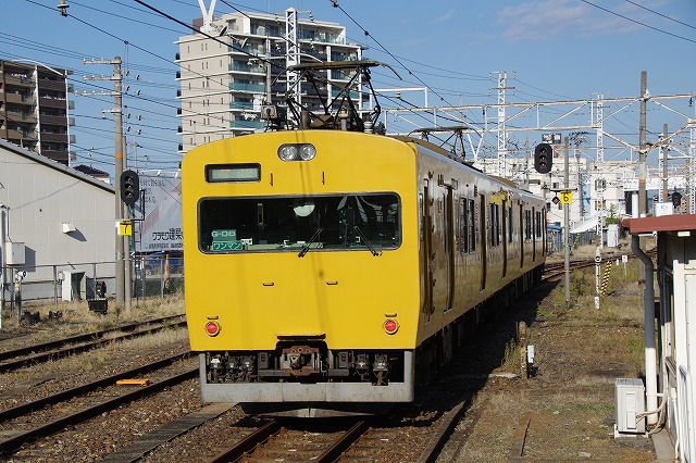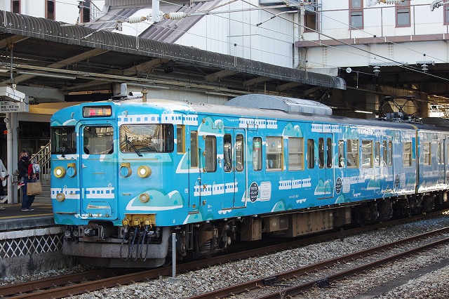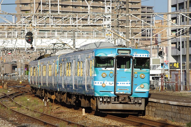 青いSETOUCHI TRAINと黄色、2色の115系 |