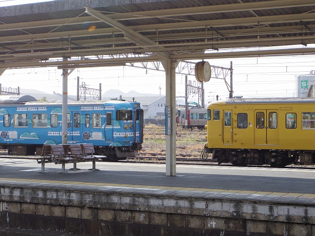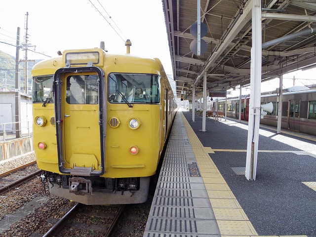 | 開設20周年企画、キハ30「1980年代国鉄撮影日記」開設20周年記念号のために、4連休をとり西日本の旅。昨日はDLやまぐち号を撮影後、山陽本線で岩国へ。お好み焼きの夕メシ後、ビジネスホテル泊。翌朝、ホテルのサービス朝メシを食べてから駅へ。メインストリートには立派なアーケードが続く。岩国7:52発(クモハ227-91)初乗車の新型車だ、4両編成転換クロスシートだ。ラッシュだが辛うじて座れた。導入から随分経っているが、まだまだ置き換え完了にならない。撮る分には国鉄型だが、乗車時の快適さはこちらに分がある。瀬戸内を眺めながらラッシュの山陽路を東へ。糸崎10:08着、隣のホームの黄色い電車へ。 |
