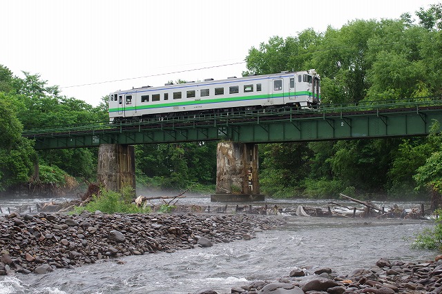 | 翌朝から丸4日間、ペンケニウプ川と名寄川の河原に2日ずつ滞在して、朝晩のキハ40通過時だけ撮影タイムにして、それ以外は渓流釣りや昼寝をしてノンビリ過ごした。 |
