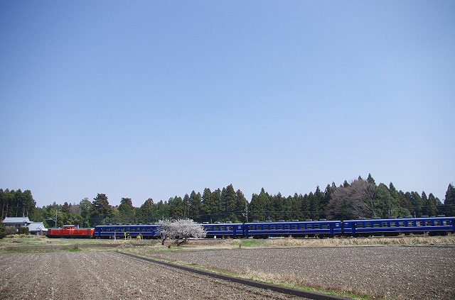 DD51と12系の組合せに釣られて出撃。停車やショートカットで先回りできそうなので数重視で攻める。例年より一週間ほど早く満開になっている桜にも期待。