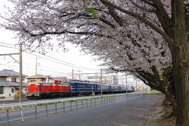 スタートは岡部から。太陽が顔を見せる直前に通過。岡部の停車で追い越し、深谷の桜満開の公園で撮って東北本線へショートカット。ロクヨンを先頭に市街地を行くところを記録。有料道路経由で日光線へ。鹿沼辺りは桜がピークで渋滞がありヒヤリとしたが今市の手前に余裕で到着し、サイドから。往路ラストの今市は、予想通り各ポイント数十人の人出で一番奥のところで肩越しに撮らせてもらった。