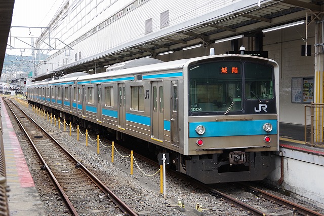 追っかけはここまでで京都へ戻る。到着時に進入してくる205系の姿が見えたので、一旦奈良線のホームで撮影。こちらではまだまだ現役だ。特急ホームにあった立ち食いそば屋の肉そばミニ鶏天セットで昼メシを済ませ、特急きのさき7号で福知山へ。京都丹後鉄道の鉄印集めに向かった。