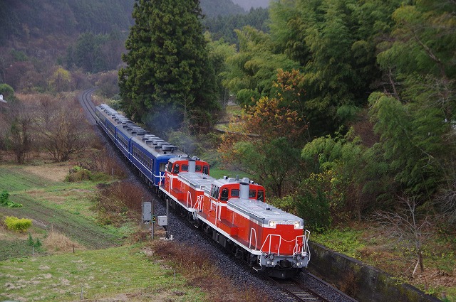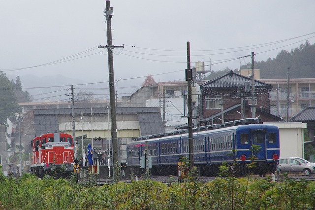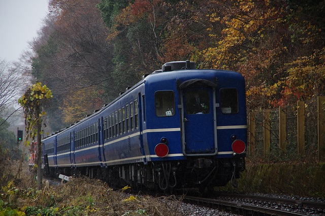 本運転の混雑を回避すべく試運転のみ参加。家を4:20発、R4で現地9:50着。早朝の晴れから曇りになり、現地に着く頃には雨が降りだす。キハ30貸切メンバーと待ち合わせした玉川村ストレートはやめて、車で待機出来そうな空いているポイントを探す。西金の手前のキャンプ場跡のカーブは、誰もいなく線路脇なのでここに決める。通過後即撤収し、袋田手前の陸橋へ。追っかけ組の最終ポイントなのでベスポジは雛壇になっていた。その脇で撮影し、玉川村から来たキハ30貸切メンバーと再開して常陸大子駅へ。