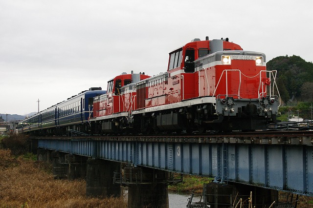 小雨の中、1時間待って入換終了まで撮影。冷え切った身体で近くの道の駅へ行った。奥久慈地鶏親子丼1,500円で遅い昼メシ。温かいけんちんそばも美味そうだった。返しは、大子から遠くへ行けば真っ暗になるので、駅先の鉄橋に決定。早起きで眠くなり車で昼寝して、通過30分前に行って仲間の隙間に入れてもらう。そこそこの露出で撮影終了し、矢板から高速経由で20時前に帰宅した。
