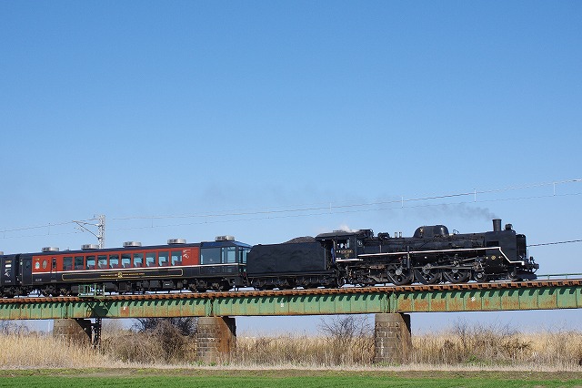 連休に運転の村上ひな街道号の試運転を撮影に新潟へ。スタートの阿賀野川の土手は30名程度。鉄橋サイドは私1人だった。往路はDE10回送を追っかける予定だったが、あまりにも見事な青空だったので、追っかけずSLもここで撮ることにした。SL通過後、高速を使って坂町駅まで先回り。駅発車後の爆煙期待で混雑を覚悟して行ったが到着時0名、発車時2名だった。C57は黒煙をモクモク吐いて発車して行った。
