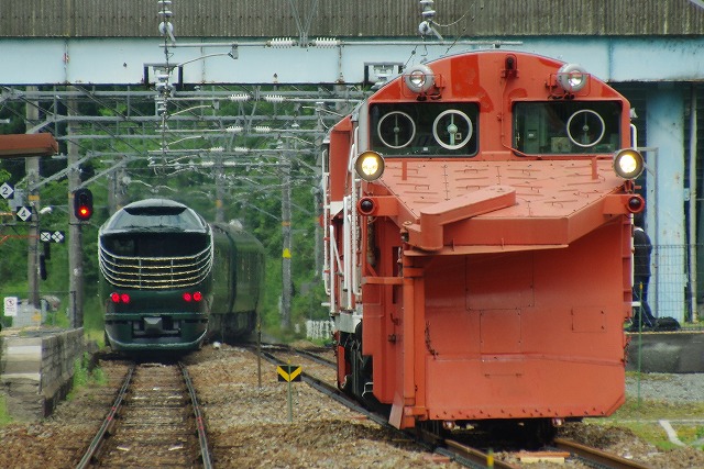 14:11 単9531レ DE15 1541 瑞風(※JR型だが、小さく特別掲載)と交換