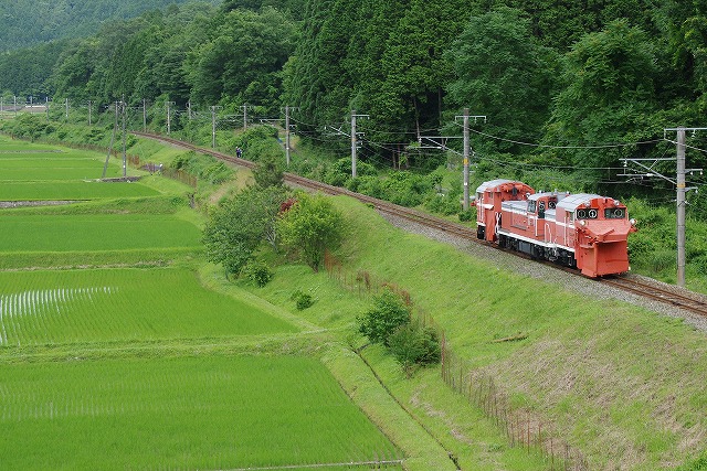 富山のDE15 1541がラッセルヘッド付で後藤工場へ入場回送するとの報を受けた。初日の富山から敦賀間はパスして、敦賀からの米子まで2日間、都合をつけて撮影に向かった。