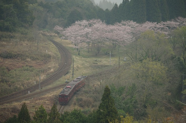 翌朝はのんびり出発、高速で大畑駅へ。桜は満開だが生憎の曇り空。スイッチバックの向こうに見えるはずのパノラマは霞んでいた。いさぶろう号の着発を撮って駅へ。ここから見る桜も見事だ。誰もいない田舎の駅を堪能した後、人吉城・熊本城・田原坂と回る(最近国鉄型がめっきり減ってしまったので日本100名城巡りをやりだしている、熊本城で60城目だ)。