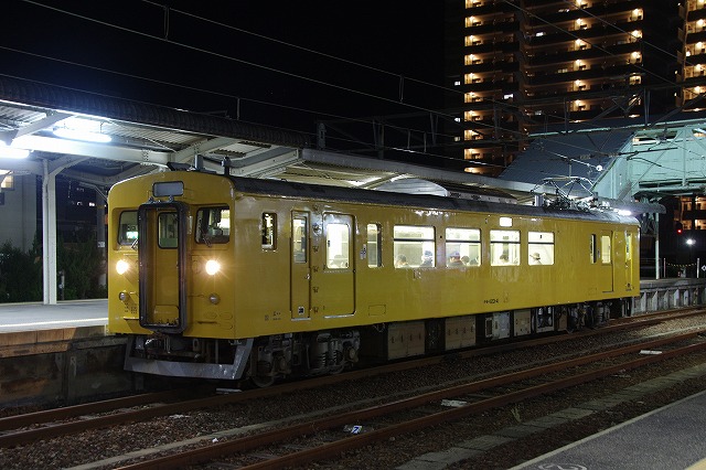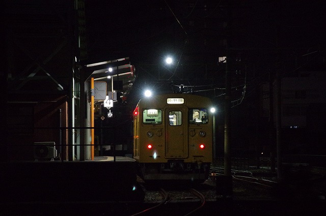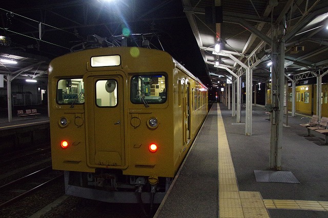 開設20周年企画、キハ30「1980年代国鉄撮影日記」開設20周年記念号のために、4連休をとり西日本の旅。仕事を早めに終えて、羽田からの最終便で山口宇部空港へ。直通バスもあったが、123系が1本撮れそうなので宇部線で宇部新川へ。空港最寄駅の草江駅まで歩き宇部新川行を待つ。私だけかと思っていたら、数名が空港方面から歩いてきて105系に乗車した。宇部新川21:45着、3番ホームの123系をサクッと撮影、5分で発車して行った。駅前の中華そば一休でラーメンを食べて、ビジネスホテルへ向かった。