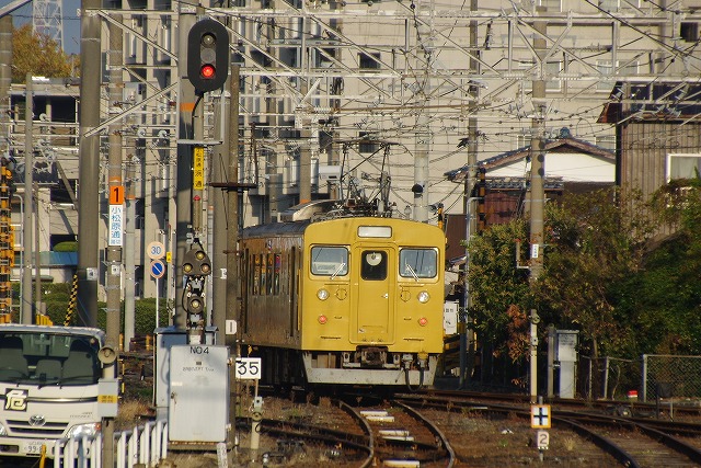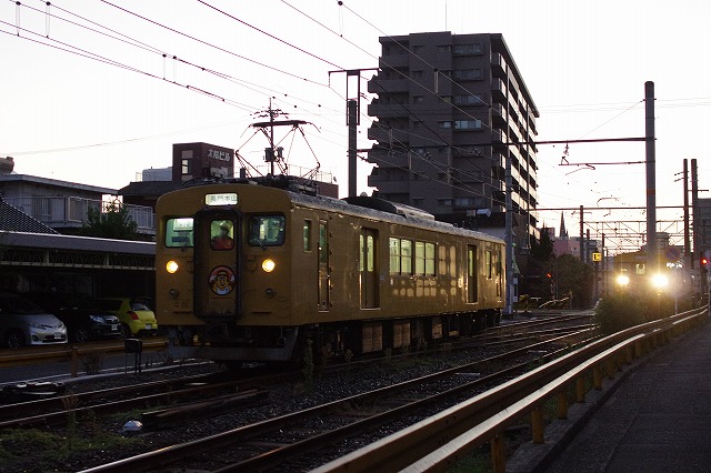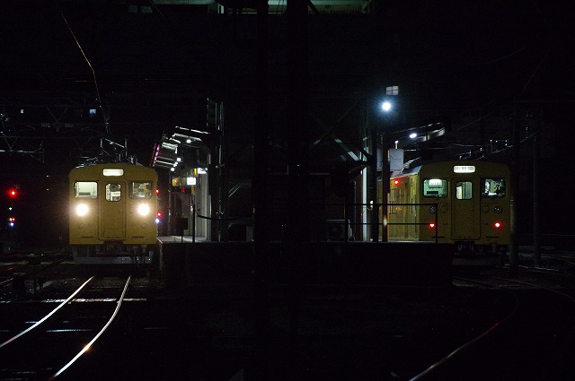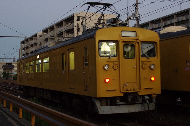 5時半過ぎに宿を出た。宇部の123系のゴールデンタイムは早朝と夕方以降だ。まずは新山口方踏切へ、105系との3連の入換から撮影開始、まだまだ暗い。3連の新山口行を見送り、宇部方踏切へ移動する。長門本山行のクモハ123-6が入換してきた。何かマークの様なものが付いていて嫌な予感が。その横を宇部行クモハ123-3が抜けて行った。