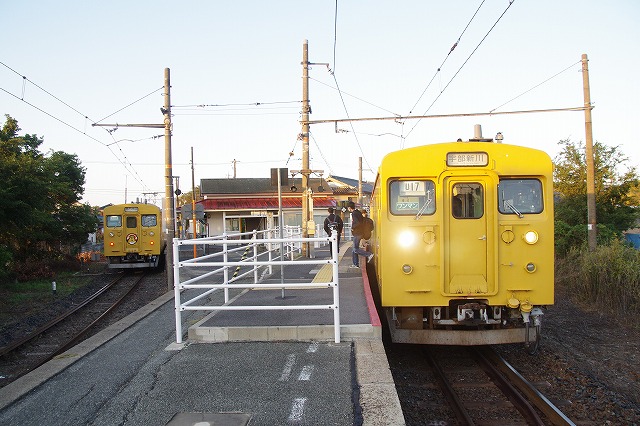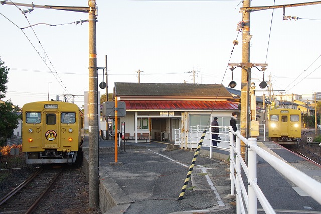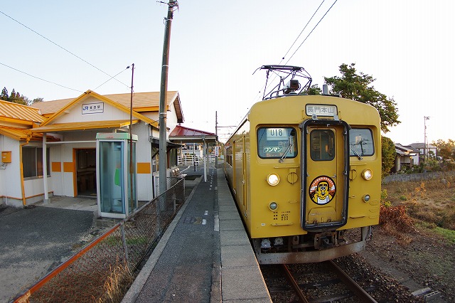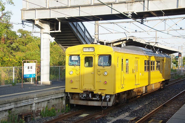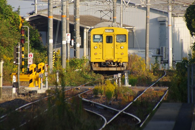 雀田6:58発(クモハ123-5)、居能7:08着、ここで駅撮りする。2本待ちの123系の発車後は20分空く、腹は減ったが店は無いので、自販機のホットココアでごまかす。居能駅は元は広い構内だったようで、草の下から線路が見える。折り返して来たクモハ123-5を撮って、居能7:40発(クモハ105-16)。