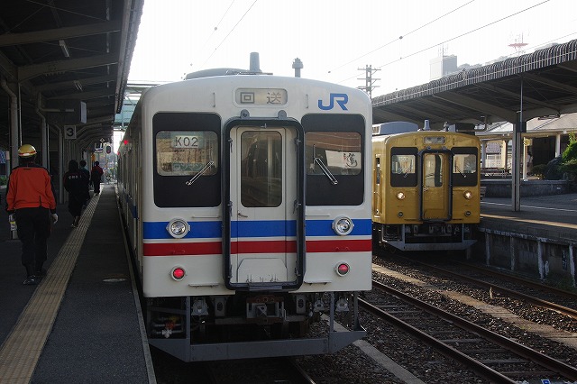 宇部新川7:45着、ここでメインディッシュの3連を待つ。待ってる間、ラッシュ運用が終わった車両が入庫してくる。さっきのマーク付123も帰ってきた。3番ホームで123系+105系の3連の撮影を終た。昨晩から今朝にかけて123系の3〜6までの4両が撮影できた。クモハ123-2はどこにいたのだろう。