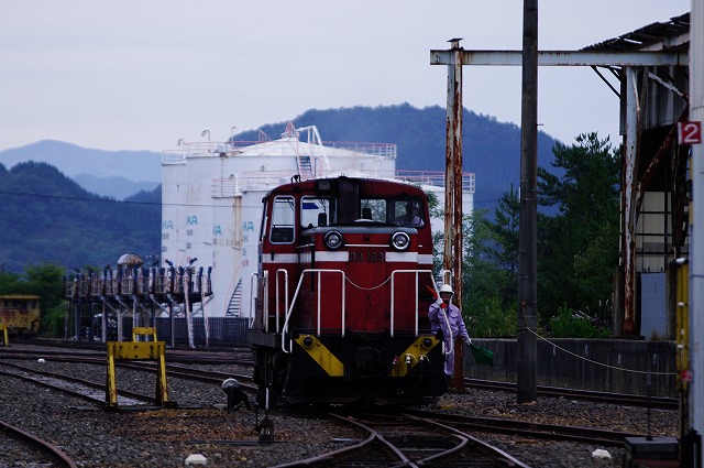 夜から降り出した雨は止まなかった。子供達は雨脚が弱まると、テトロという手漕ぎトロッコを満喫していたが、私はテンションが上がらないまま8時前に小坂の「ブルートレインあけぼの」を出発し八戸へ向かう。9:20に八戸貨物駅に到着し、カマ確認待ちしているとすぐにDD16