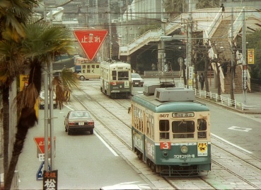 5:40起床、博多に着いていた。6:23折尾着、6:25折尾発(クハ421-61)、6:31遠賀川着、室木線・筑豊本線に乗る。筑豊本線ではオハ50-10に乗った。若松の構内でキユニ26-19が解体されていた。11時過ぎに博多に出て香椎線・勝田線へ。この辺りはキハ65が多い。西戸崎でキハ65-65を撮る。ここを発車すると右手に黄色い砂浜と海が見えた。博多14:41発(クハ421-40)、途中下車しながら今日の宿泊地長崎へ。佐賀から乗ったモハ715-12は583系の改造車だ。神埼で降りてチビロコ重連やクハ411-366を撮った。