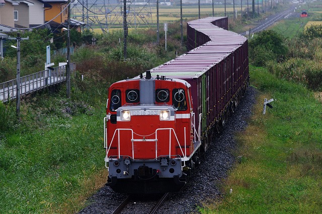 | 夜から降り出した雨は止まず、テンションが上がらないまま8時前に小坂の「ブルートレインあけぼの」を出発し八戸へ向かう。9:20に八戸貨物駅に到着し、カマ確認待ちしているとすぐにDD16