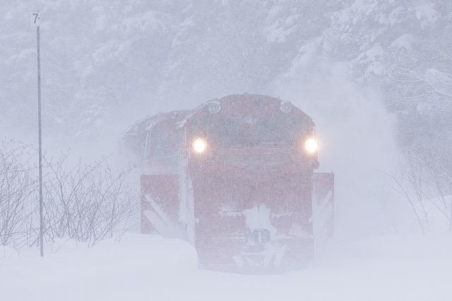 音威子府に近づくにつれ雪は強くなり、この先の撮影を断念し南線へ転戦する。音威子府の駅そばはパスして塩狩峠へと向かった。