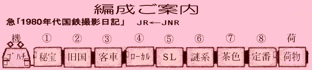 | 1980年代に日本中をかけ回り、EF58・旧型国電・旧型客車・ローカル線・お召し列車・SLなど国鉄車両を撮影しまくった少年の撮影日記です。さらに、2000年代の現在も頑張っている国鉄型の撮影記もあります。 |